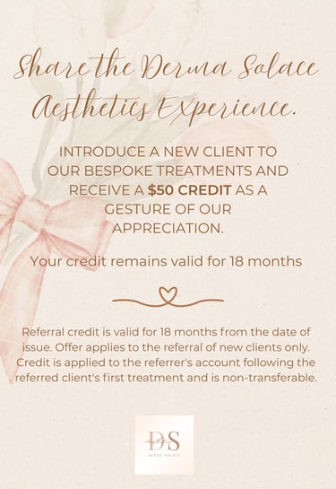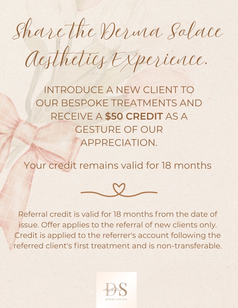 Disclaimer: The administration and interpretation of The Solace Referral program remain at the exclusive discretion of Derma Solace Aesthetics. The clinic retains the right to make all final determinations concerning eligibility, credit issuance, and any aspect of the program.